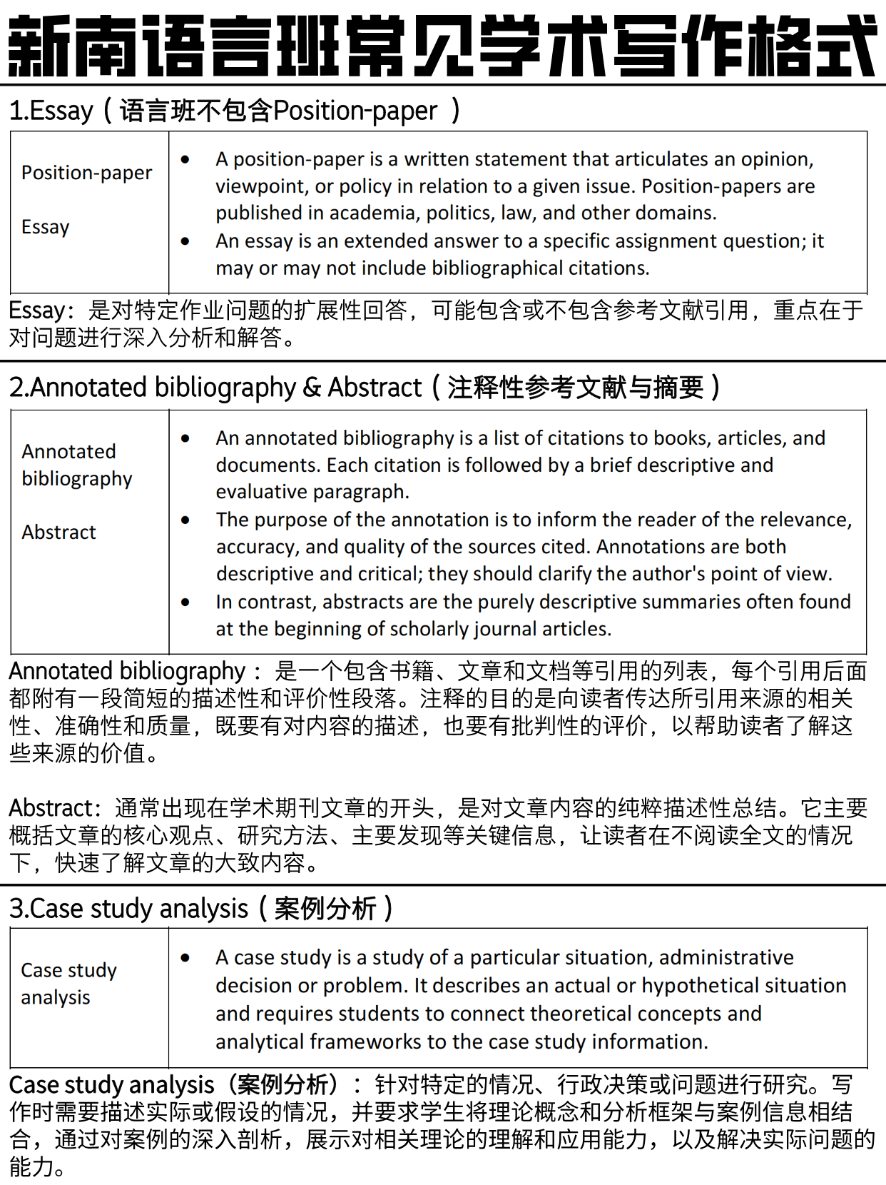 Annotated bibliography:带批注的文献合集!每篇引用后面加一段话,既要总结内容,也要怼一怼它的优缺点(比如“这篇实验样本太少了,仅供参考”)。