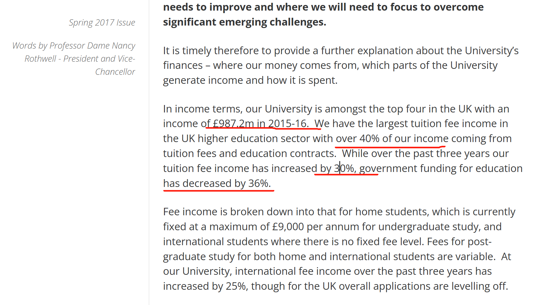 曼大官网在2015/16财年,财报显示,UOM总收入达9.872亿英镑,其中40%以上来自学费与教育合同,过去三年学费收入增长30%,而政府资助却下降36%,也就是说不用政府补贴,照样有钱用, 这钱怎么来的,留学生贡献出来的!!